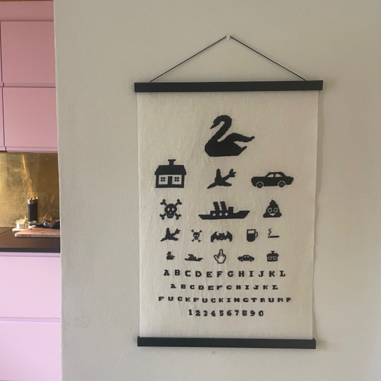 | Vælg broderistof | Synstest – Fuck Trump (aida), Synstest – Fuck Trump (hør) |