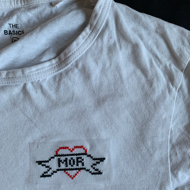 - Brodér nu gennem både geléstof OG tekstilet. Det er vigtigt, at du husker at hæfte godt både når du starter og afslutter på en tråd. Især hvis det er noget, der skal kunne holde til en masse ture i vaskemaskinen.